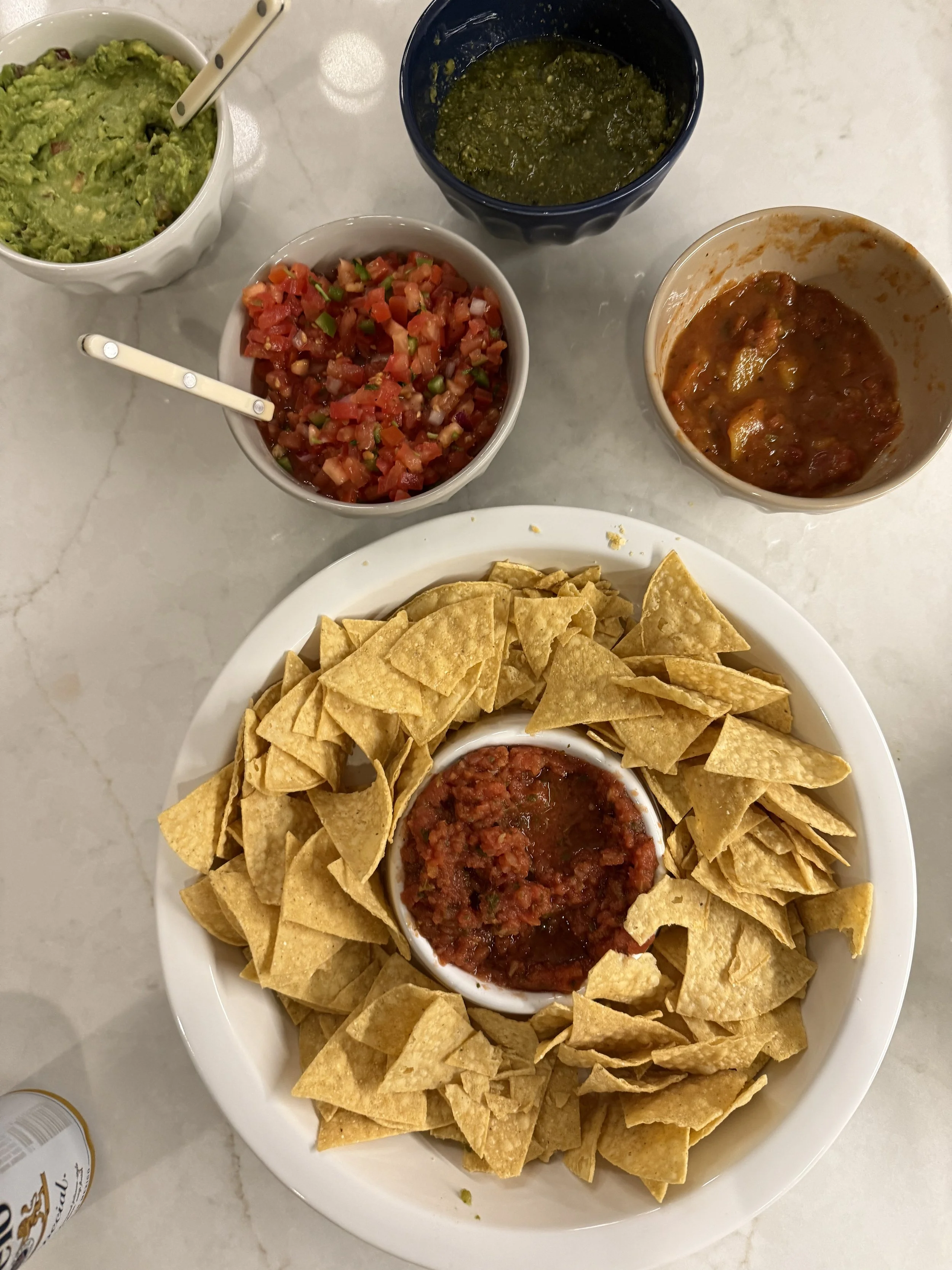 Chimichurri chicken with butter lettuce side salad and fried zucchini pasta salad. Strawberry scones and peach Melba popsicles for dessert 🍑