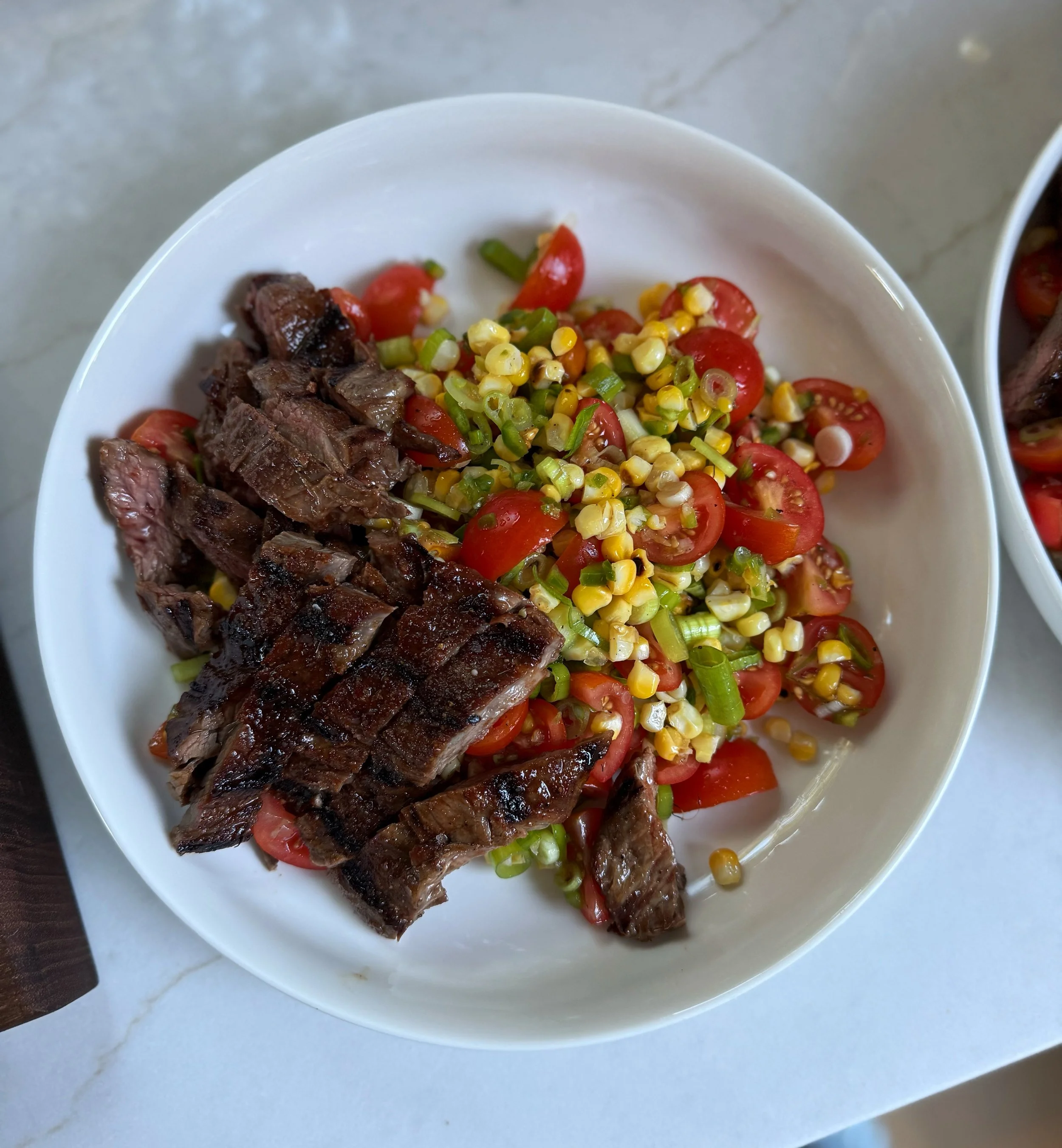 Recipe from Deb Perelman. This steak was so good. Such a good use of summer produce.