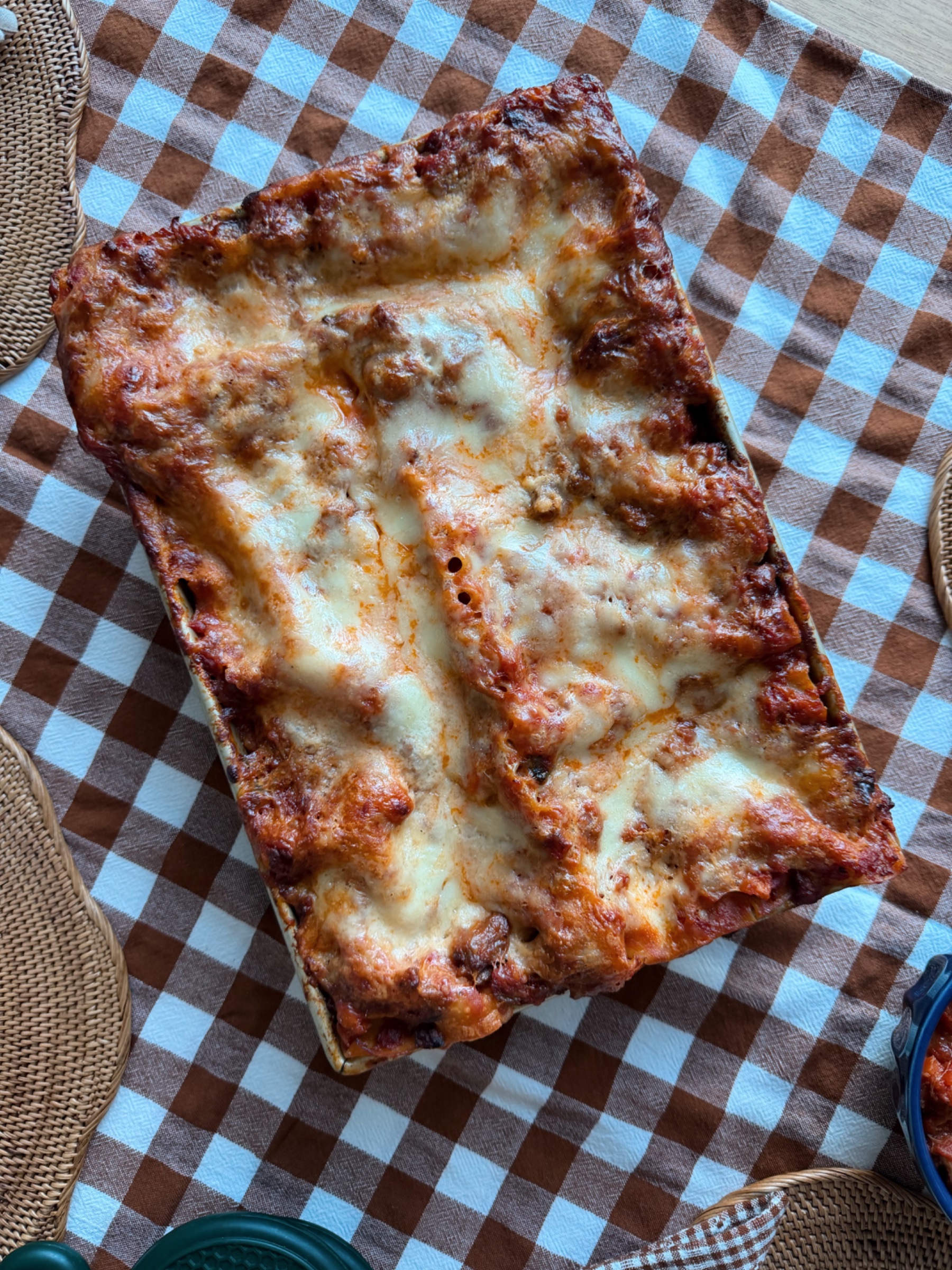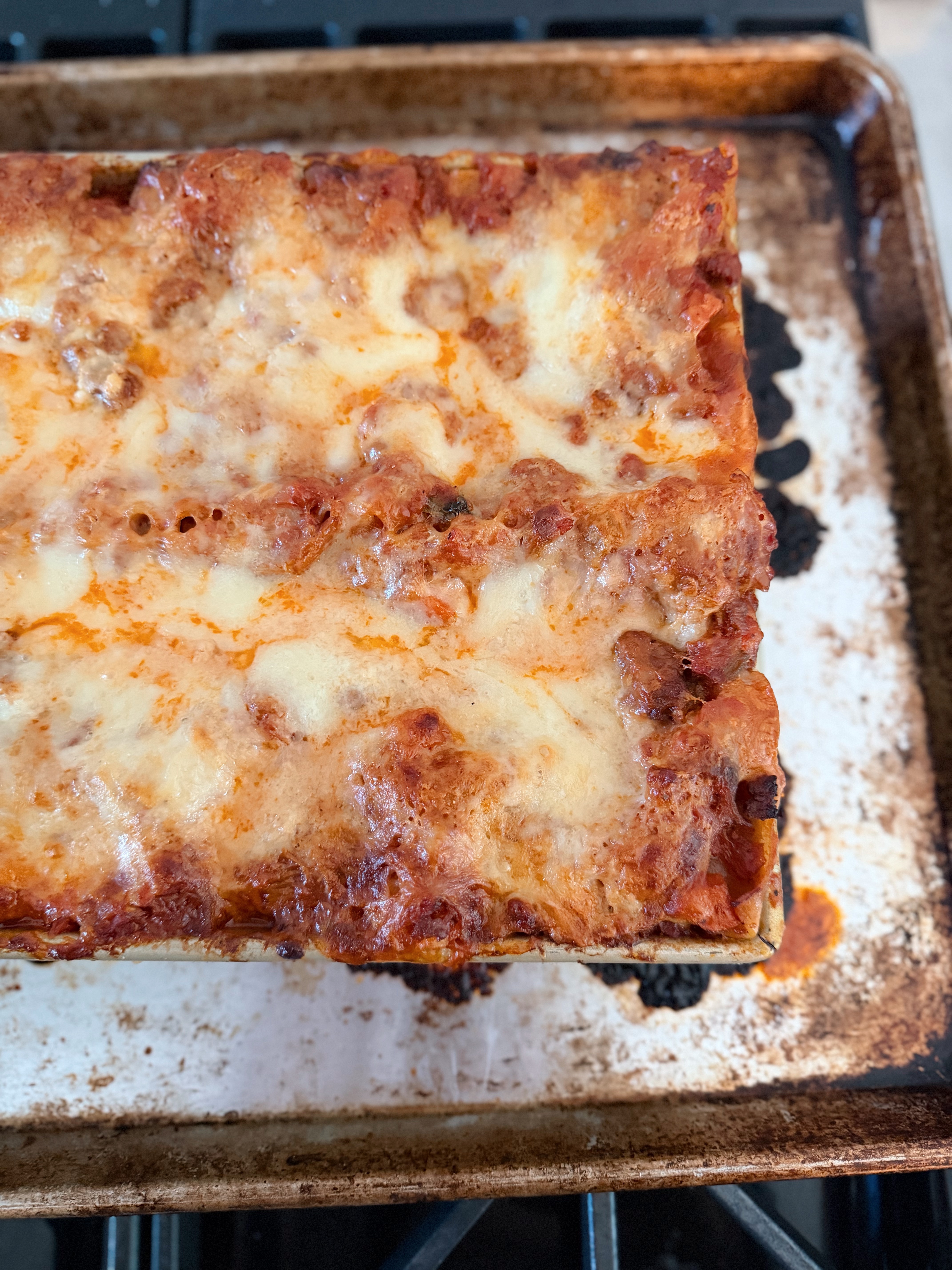 We made a version of this Frank Proto recipe. The steps are: make a red sauce (with two types of pork), then assemble the lasagna with 4 cheeses: Parmesan, pecorino Romano, mozzarella, and ricotta. It was so delicious - we ended up with left over red sauce which I’ve been eating with eggs for lunch for days 😋