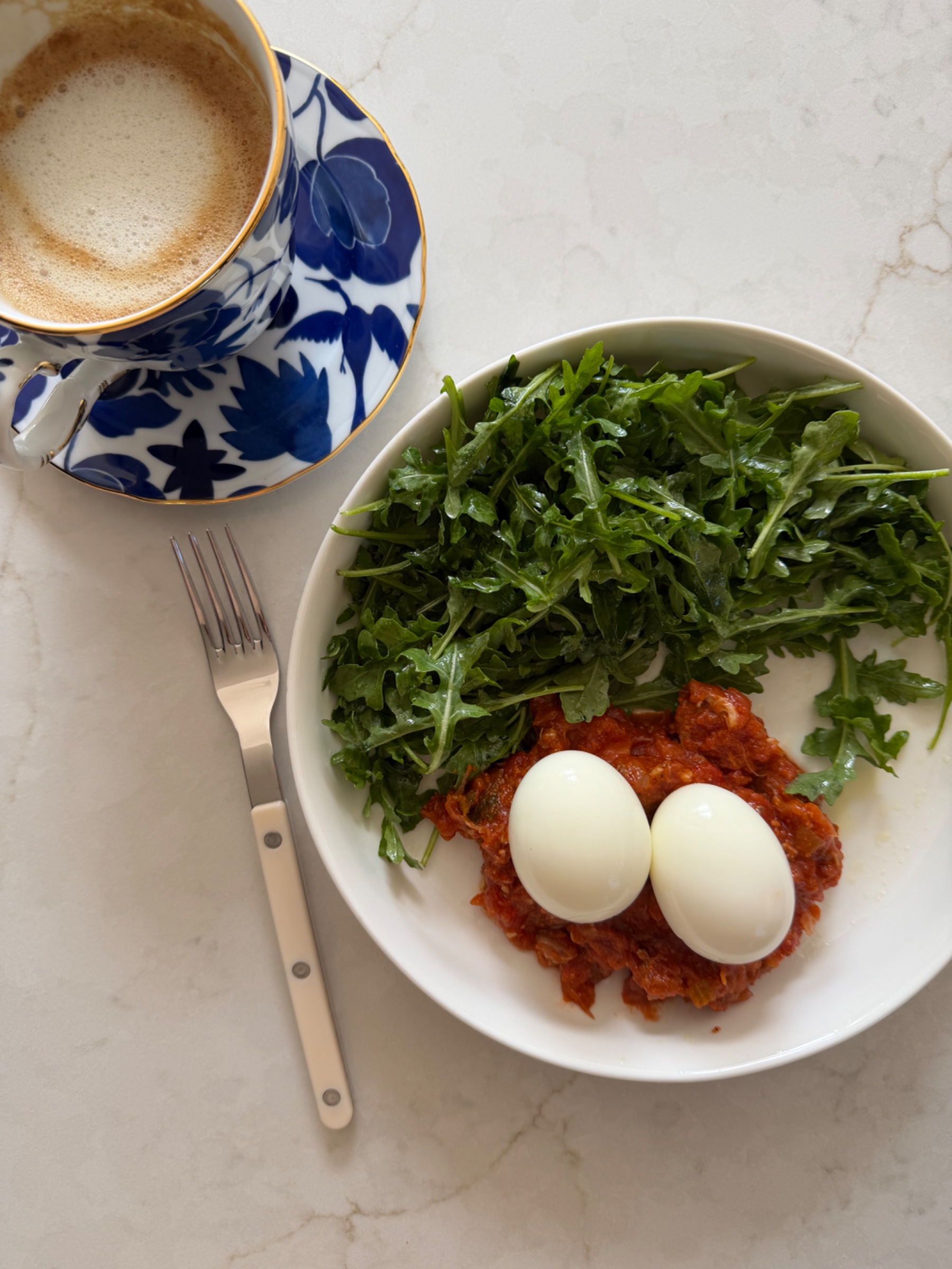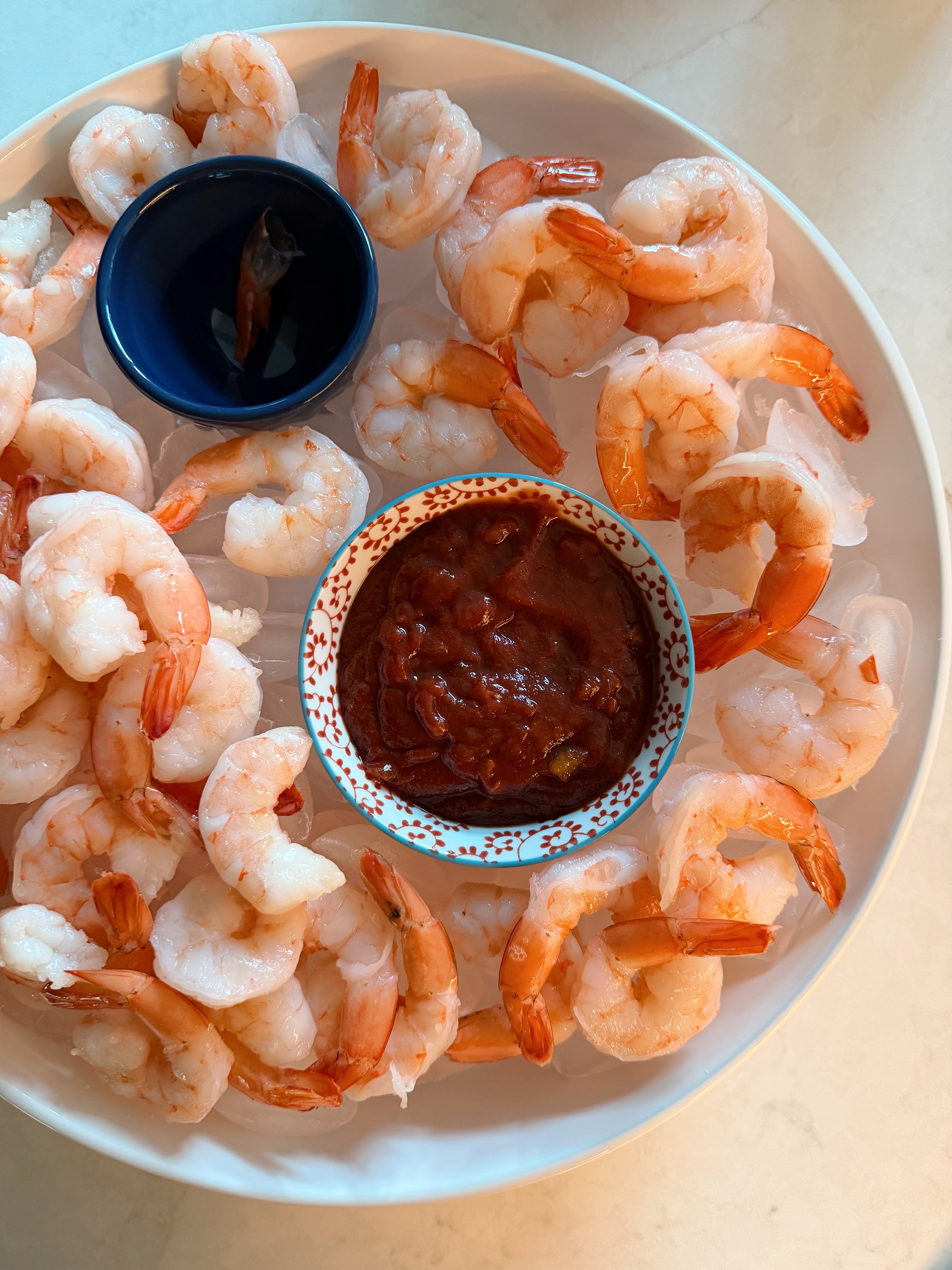 Mark has been trying to teach us all about macros and how we can eat more sensibly. This week’s lesson was about the value of front loading a very fat and carb heavy meal with some protein. So, hello shrimp cocktail! We had leftover horseradish from Passover so we were able to mix it with cocktail sauce to make a delicious and spicy sauce.