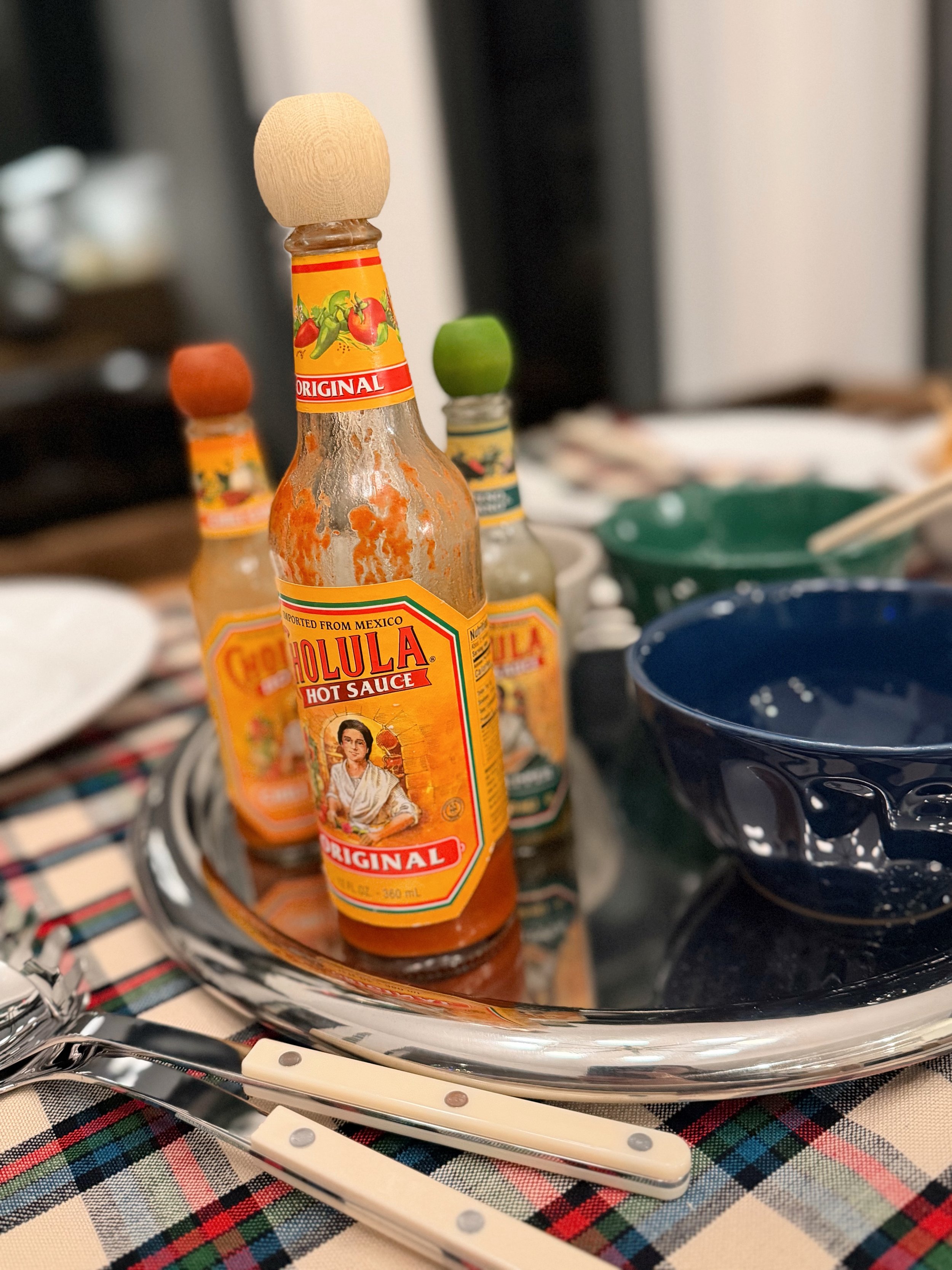 Follow Brian Lagerstrom’s recipe for the ground beef part, then served them with street tacos tortillas which are adorably small. Plated three different varieties of Cholula (regular, chili garlic, and green pepper) for folks to chose from, along side shredded lettuce, Mexican cheese, green salsa, red salsa, and chips.