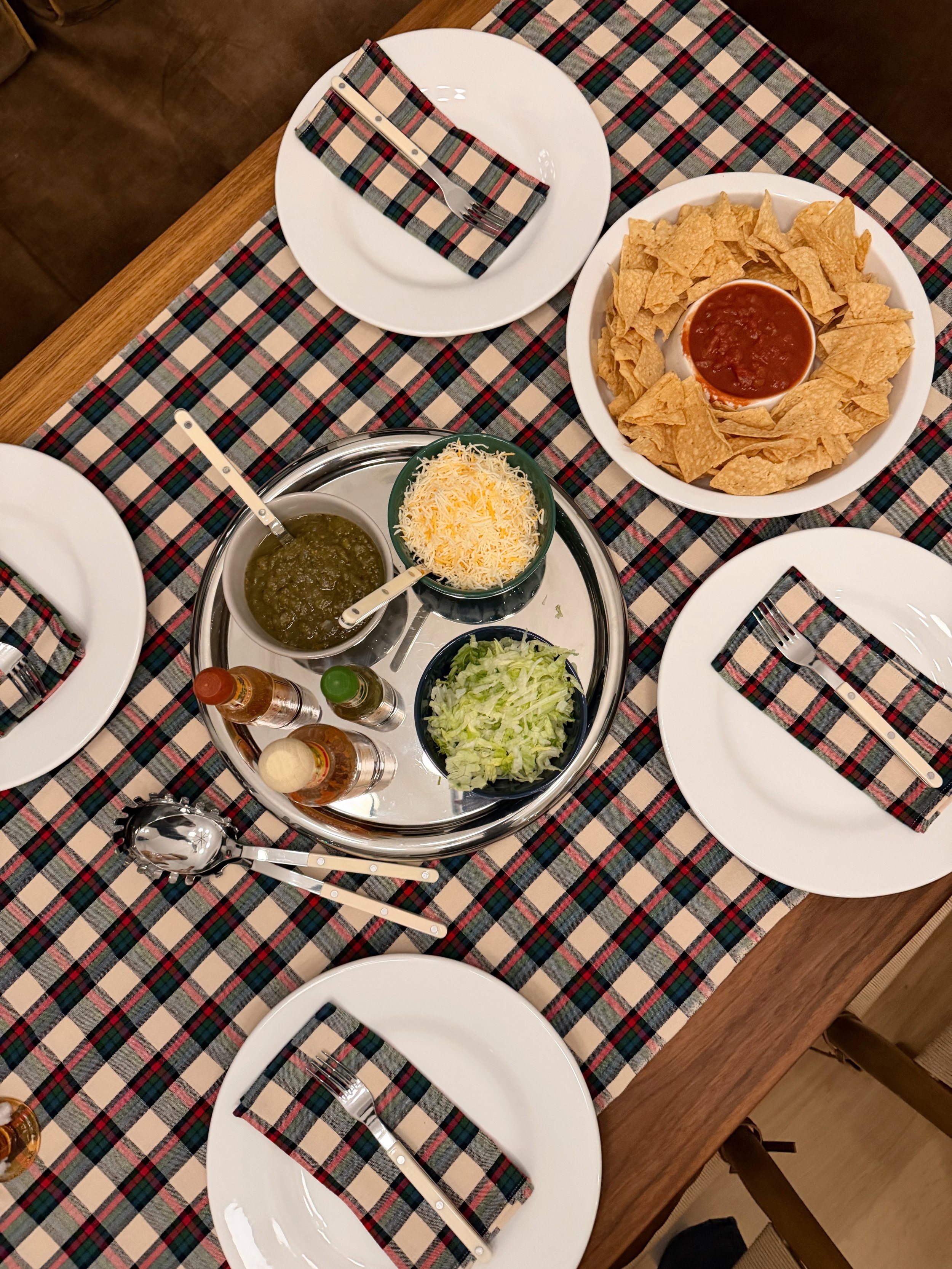 Amanda was out of town this week so the theme was “eat quickly so we can go play video games faster” 🏎️ We made gringo tacos - or as Mark likes to call them “school cafeteria tacos”. We also kicked off our holiday celebrations with a cookie box, homemade Chex mix (with plenty of left overs), jelly donuts, and a dreidel for Panda to celebrate the first night of Hanukkah 🕎