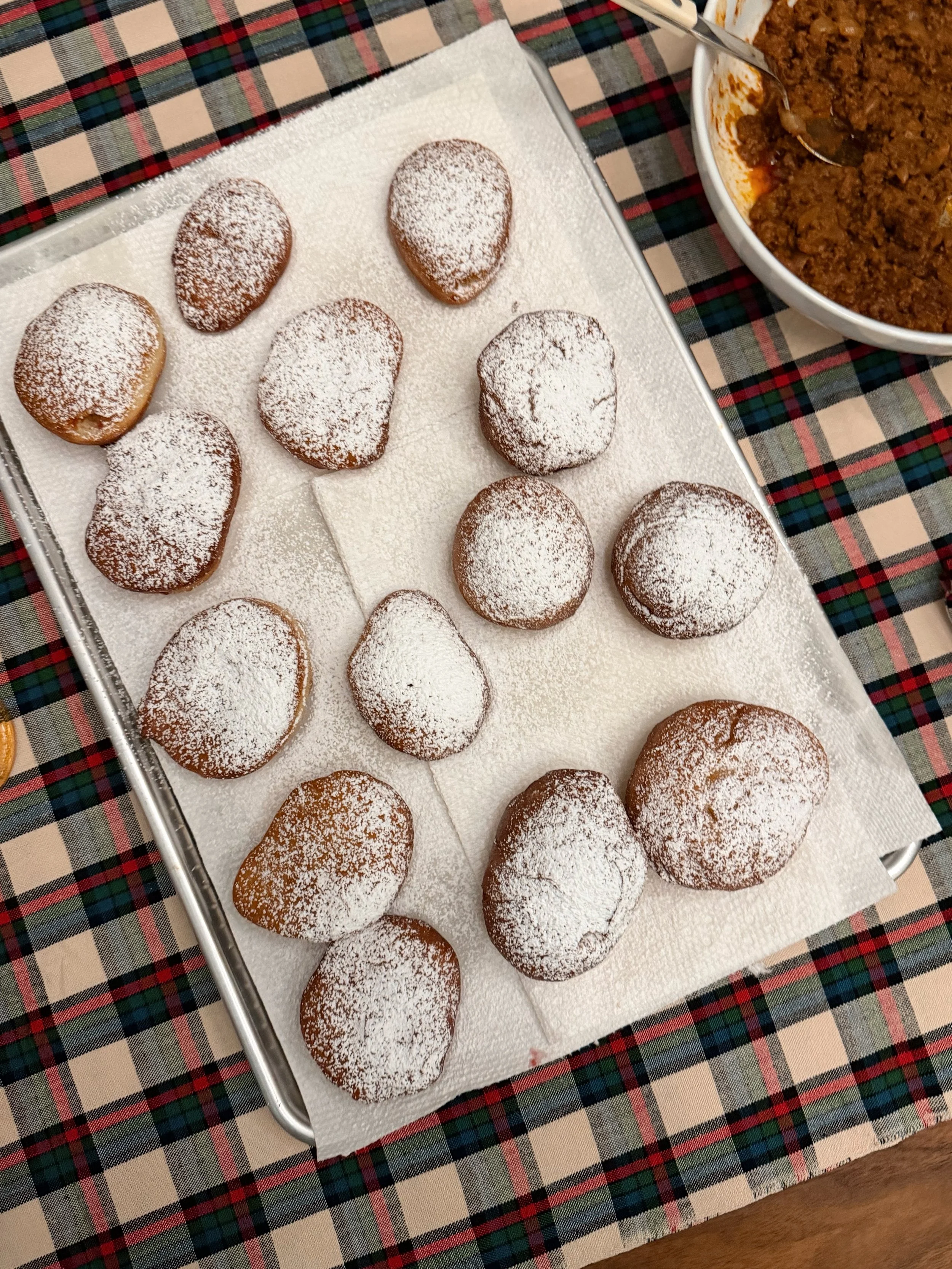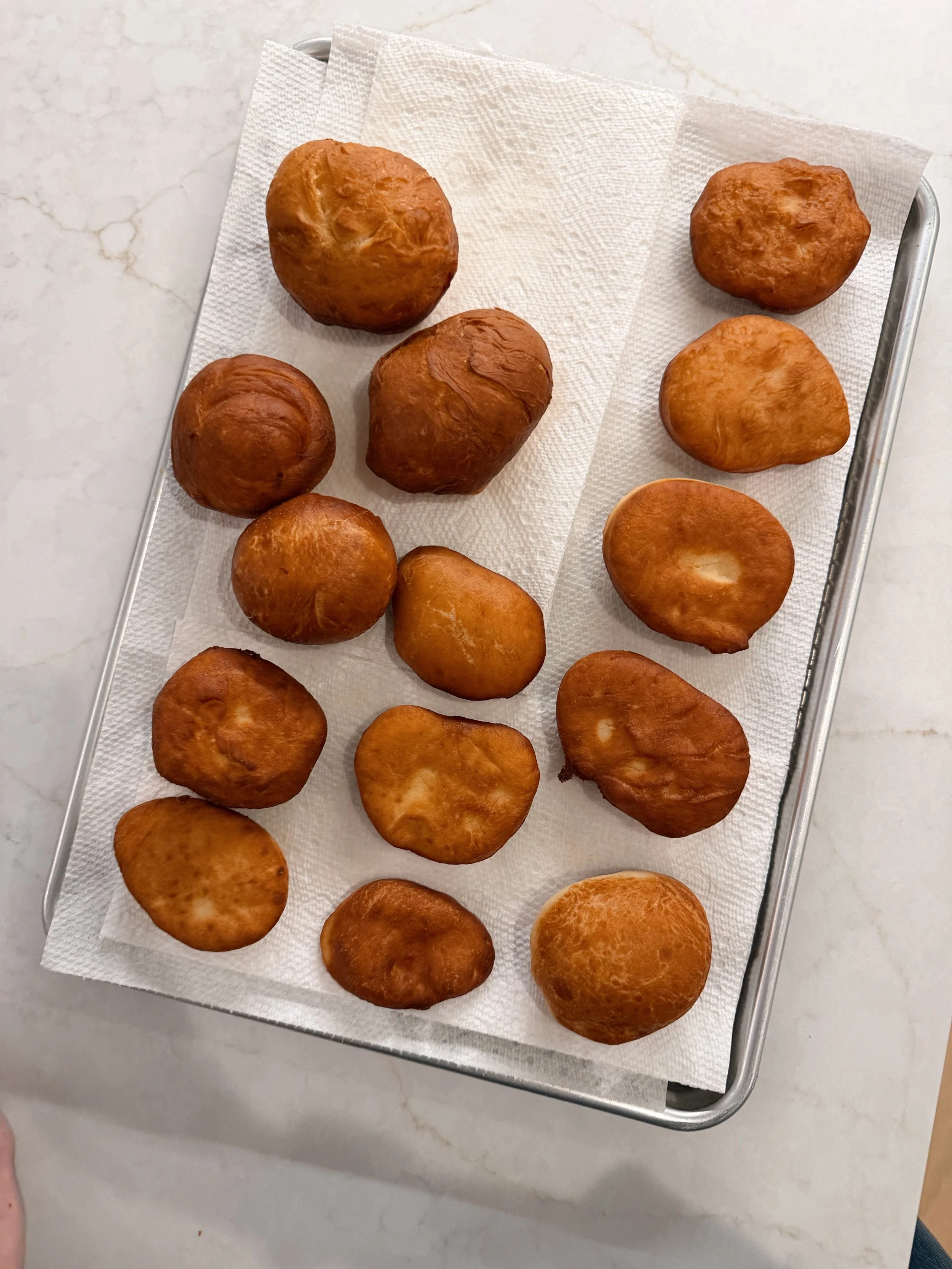 It was the first night of Hanukkah so we Deb’s version of this classic Hanukkah treat of dough fried in oil then filled them with raspberry jelly and topped them with powdered sugar. The dough was scented with orange zest which really makes these pop!
