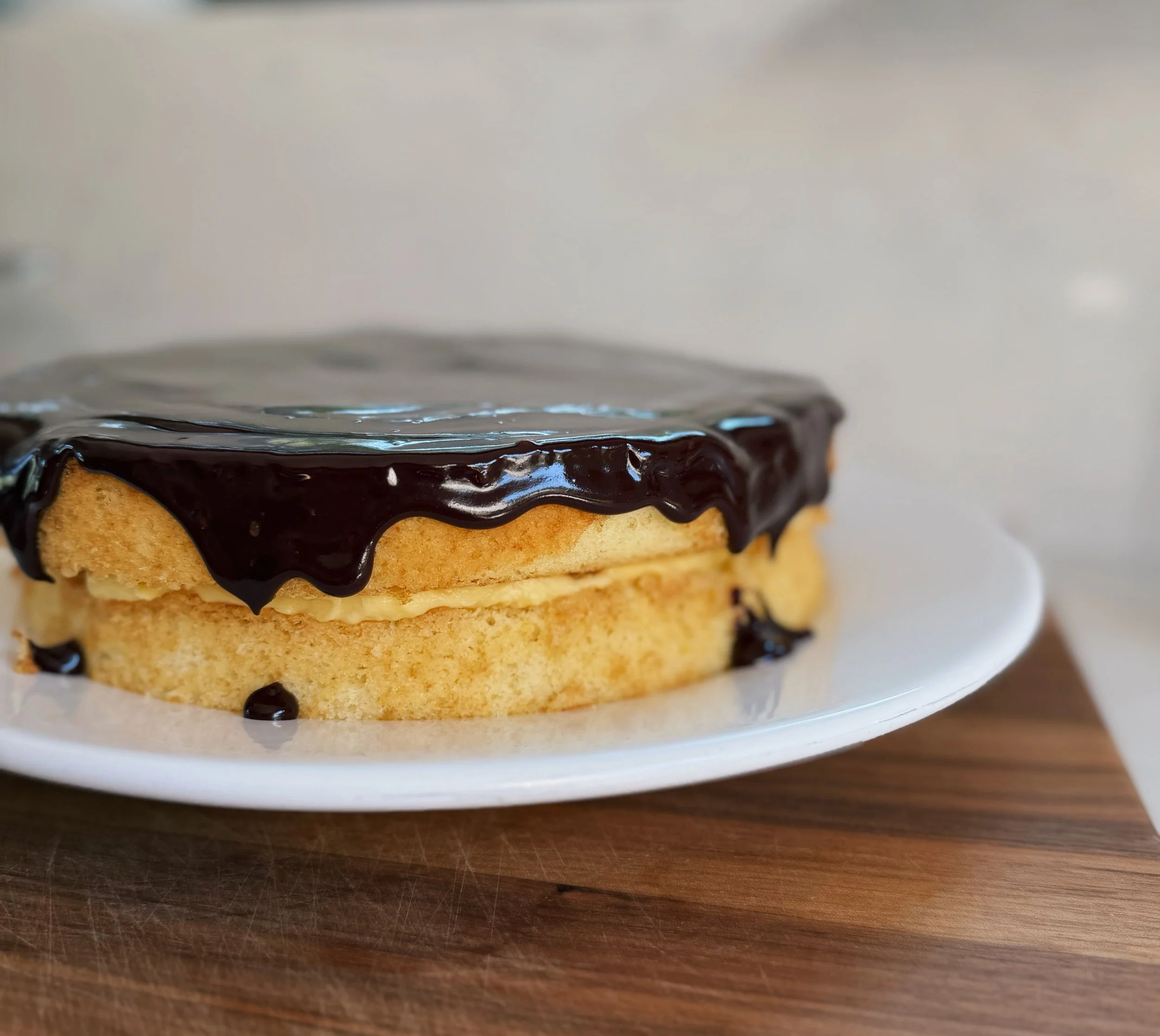 We went out for donuts on Saturday and were discussing how delicious Boston Cream Pie flavors are so I tried to make one - but the custard ended up too thick (which is half the delicious joy of a Boston Cream Pie). The ganache was still perfection and the cake texture was very good. Recipe from ATK.