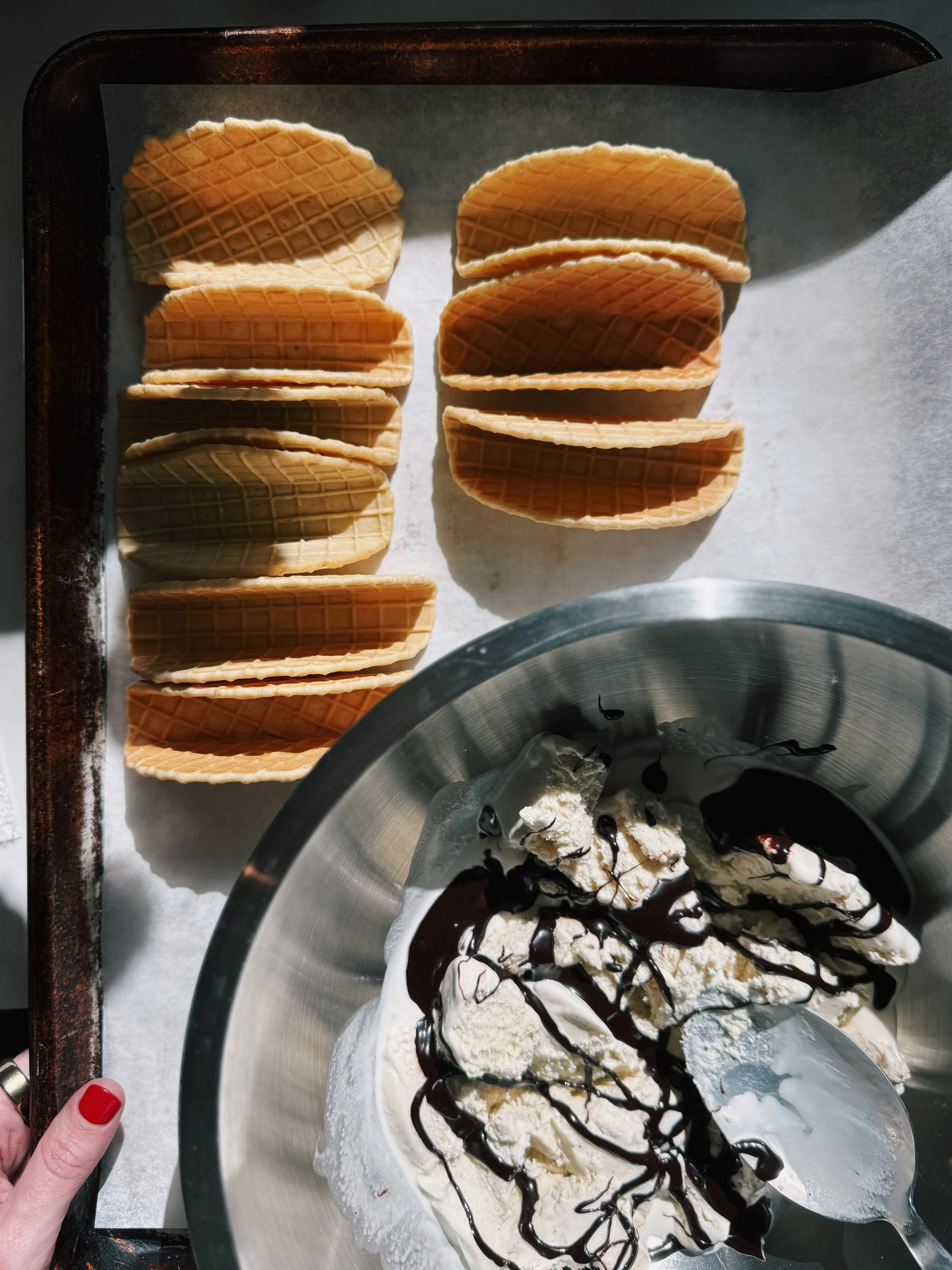 Googled recipes for this expecting to find lots of options and was shocked to find out that there really aren’t there many of us out there who miss this 😢 Made the shells from this recipe (did require acquiring a waffle cone maker which I was all too excited to buy 🧇)