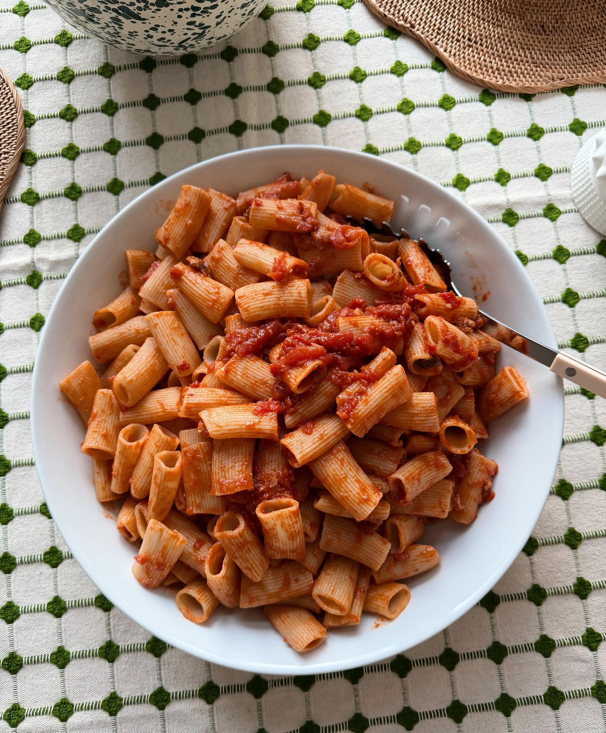 Instead of trying to squeeze everything onto one tray (like we did here, and here) this time we decided to serve the meat and noodles separately - this made it easier to serve and allowed everyone to pick their ideal ratio! We used Mill Valley Pasta Company’s Big Rig noodles - a personal favorite for their texture and size.