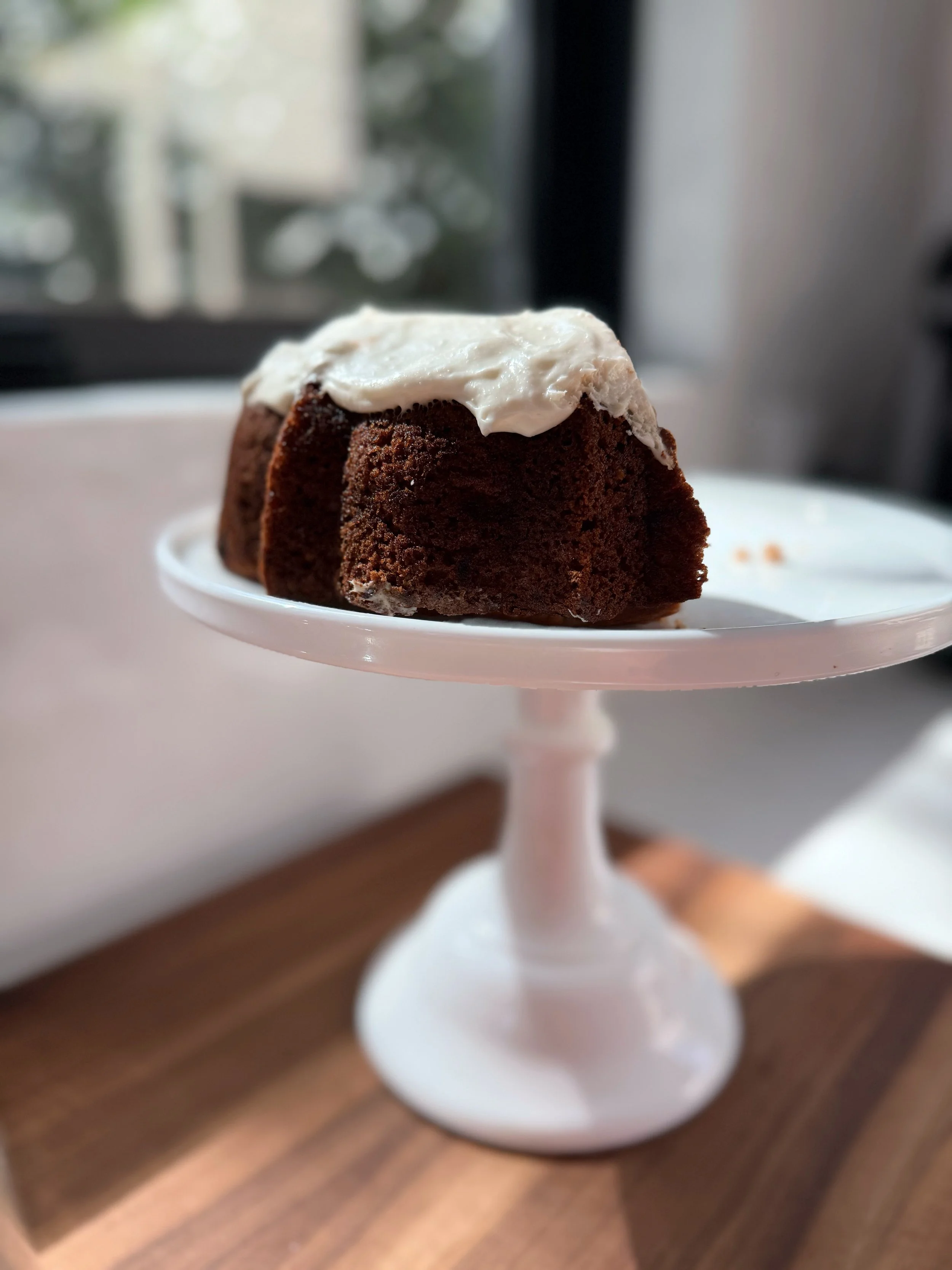 Was searching for a cake that I could slice and serve - and I had a lot of extra bananas lying around. Recipe from King Arthur.