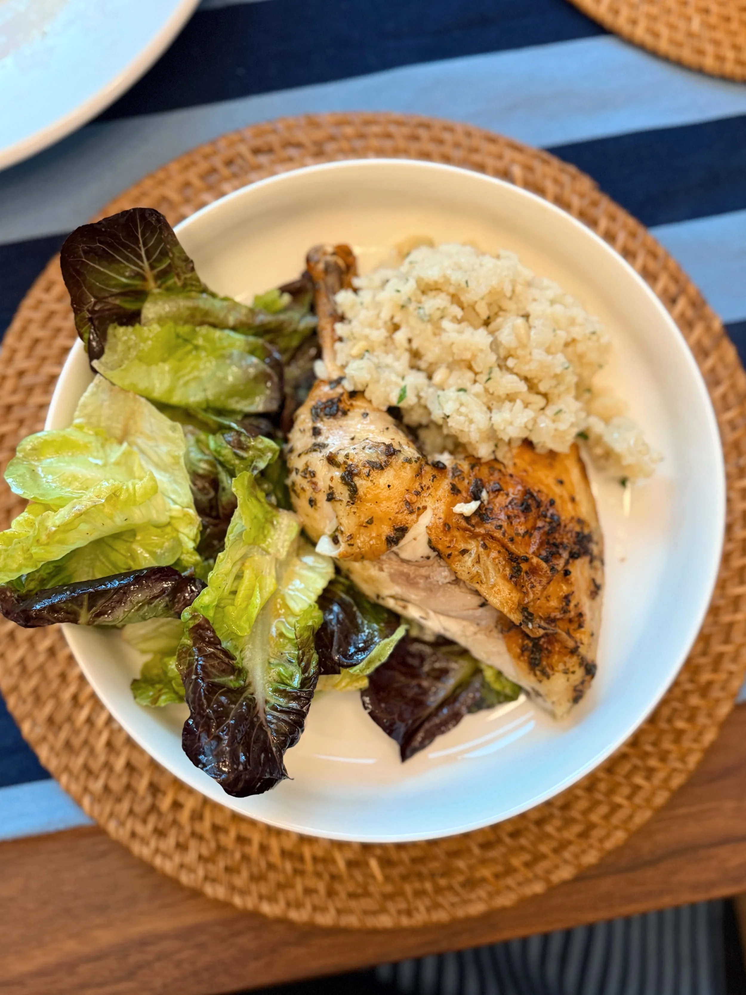 Peach was out of town this week so we kept things simple - roasted chicken, pilaf, & salad with homemade chocolate chip cookies πͺ